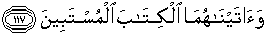 117. Dan Kami berikan kepada keduanya kitab yang sangat jelas.