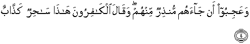 4. Dan mereka heran karena mereka kedatangan seorang pemberi peringatan (rasul) dari kalangan mereka; dan orang-orang kafir berkata: "Ini adalah seorang ahli sihir yang banyak berdusta."