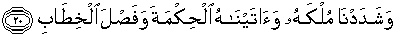 20. Dan Kami kuatkan kerajaannya dan Kami berikan kepadanya hikmah