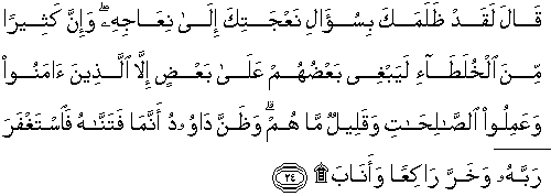 24. Daud berkata: "Sesungguhnya dia telah berbuat zalim