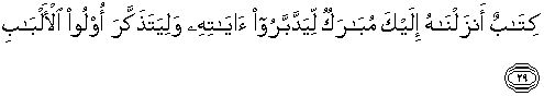 29. Ini adalah sebuah kitab yang Kami turunkan kepadamu penuh dengan berkah supaya mereka memperhatikan ayat-ayatnya dan supaya mendapat pelajaran orang-orang yang mempunyai fikiran.
