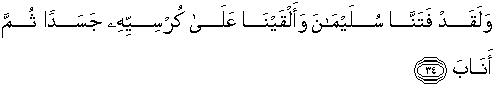 34. Dan sesungguhnya Kami telah menguji Sulaiman dan Kami