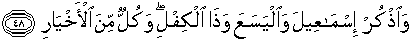 48. Dan ingatlah akan Ismail, Ilyasa' dan Zulkifli. Semuanya termasuk orang-orang yang paling baik.