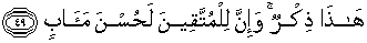 49. Ini adalah kehormatan (bagi mereka). Dan sesungguhnya bagi orang-orang yang bertakwa benar-benar (disediakan) tempat kembali yang baik,