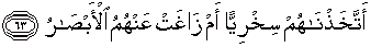 63. Apakah kami dahulu menjadikan mereka olok-olokan, ataukah karena mata kami tidak melihat mereka?"