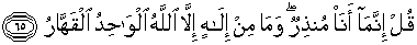 65. Katakanlah (ya Muhammad): "Sesungguhnya aku hanya seorang pemberi peringatan, dan sekali-kali tidak ada Tuhan selain Allah Yang Maha Esa dan Maha Mengalahkan.