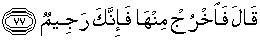 77. Allah berfirman: "Maka keluarlah kamu dari surga; sesungguhnya kamu adalah orang yang terkutuk,