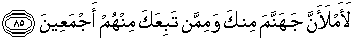 85. Sesungguhnya Aku pasti akan memenuhi neraka Jahannam dengan jenis kamu dan dengan orang-orang yang mengikuti kamu di antara mereka kesemuanya.
