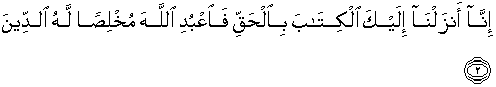 2. Sesunguhnya Kami menurunkan kepadamu Kitab (Al Quran) dengan (membawa) kebenaran. Maka sembahlah Allah dengan memurnikan ketaatan kepada-Nya.