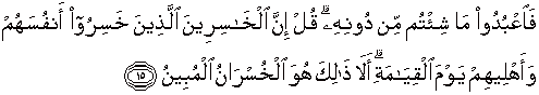 15. Maka sembahlah olehmu (hai orang-orang musyrik) apa yang