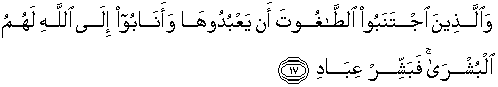 17. Dan orang-orang yang menjauhi thaghut (yaitu) tidak menyembah-