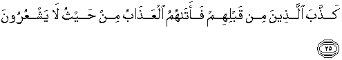 25. Orang-orang yang sebelum mereka telah mendustakan (rasul-rasul), maka datanglah kepada mereka azab dari arah yang tidak mereka sangka.