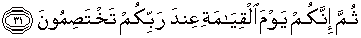 31. Kemudian sesungguhnya kamu pada hari kiamat akan berbantah-bantah di hadapan Tuhanmu.
