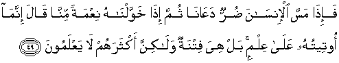 49. Maka apabila manusia ditimpa bahaya ia menyeru Kami, kemudian