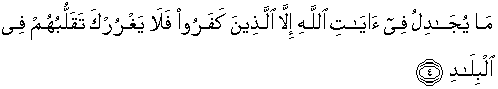 4. Tidak ada yang memperdebatkan tentang ayat-ayat Allah, kecuali orang-orang yang kafir. Karena itu janganlah pulang balik mereka dengan bebas dari suatu kota ke kota yang lain memperdayakan kamu.