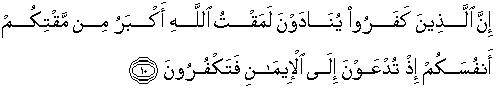 10. Sesungguhnya orang-orang yang kafir diserukan kepada mereka
