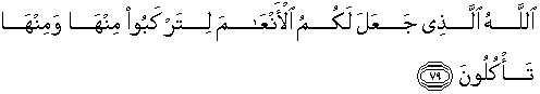 79. Allahlah yang menjadikan binatang ternak untuk kamu, sebagiannya untuk kamu kendarai dan sebagiannya untuk kamu makan.