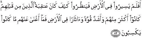 82. Maka apakah mereka tiada mengadakan perjalanan di muka bumi