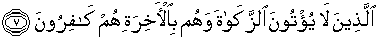 7. (yaitu) orang-orang yang tidak menunaikan zakat dan mereka kafir akan adanya (kehidupan) akhirat.
