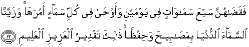 12. Maka Dia menjadikannya tujuh langit dalam dua masa. Dia