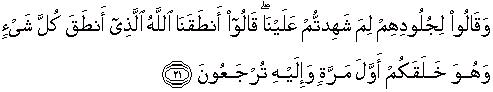 21. Dan mereka berkata kepada kulit mereka: "Mengapa kamu menjadi