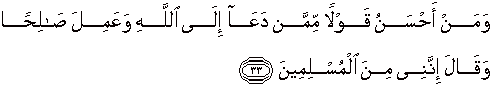 33. Siapakah yang lebih baik perkataannya daripada orang yang menyeru kepada Allah, mengerjakan amal yang saleh, dan berkata: "Sesungguhnya aku termasuk orang-orang yang menyerah diri?"