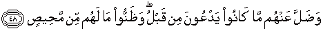 48. Dan hilang lenyaplah dari mereka apa yang selalu mereka sembah dahulu, dan mereka yakin bahwa tidak ada bagi mereka satu jalan keluarpun.