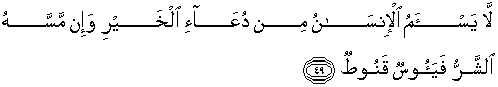 49. Manusia tidak jemu memohon kebaikan, dan jika mereka ditimpa malapetaka dia menjadi putus asa lagi putus harapan.