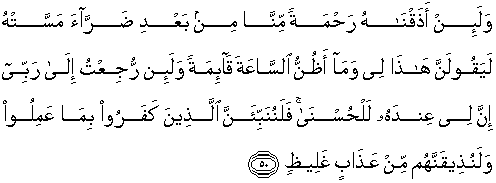 50. Dan jika Kami merasakan kepadanya sesuatu rahmat dari Kami sesudah