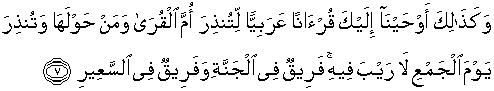 7. Demikianlah Kami wahyukan kepadamu Al Quran dalam bahasa Arab, supaya