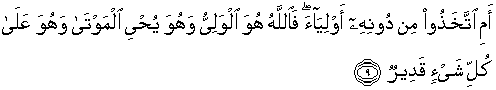 9. Atau patutkah mereka mengambil pelindung-pelindung selain Allah? Maka Allah, Dialah pelindung (yang sebenarnya) dan Dia menghidupkan orang- orang yang mati, dan Dia adalah Maha Kuasa atas segala sesuatu.