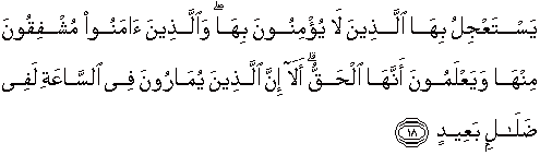 18. Orang-orang yang tidak beriman kepada hari kiamat meminta supaya