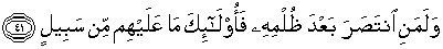 41. Dan sesungguhnya orang-orang yang membela diri sesudah teraniaya, tidak ada satu dosapun terhadap mereka.