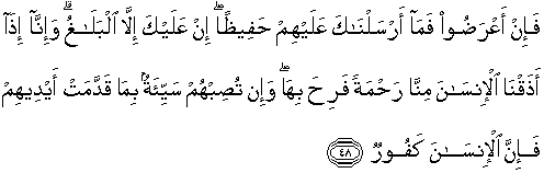 48. Jika mereka berpaling maka Kami tidak mengutus kamu sebagai pengawas