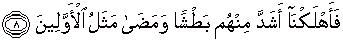 8. Maka telah Kami binasakan orang-orang yang lebih besar kekuatannya dari mereka itu (musyrikin Mekah) dan telah terdahulu (tersebut dalam Al Quran) perumpamaan umat-umat masa dahulu.