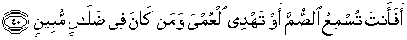 40. Maka apakah kamu dapat menjadikan orang yang pekak bisa mendengar atau (dapatkah) kamu memberi petunjuk kepada orang yang buta (hatinya) dan kepada orang yang tetap dalam kesesatan yang nyata?