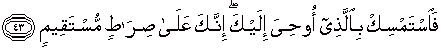 43. Maka berpegang teguhlah kamu kepada agama yang telah diwahyukan kepadamu. Sesungguhnya kamu berada di atas jalan yang lurus.