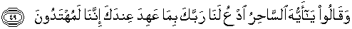 49. Dan mereka berkata: "Hai ahli sihir[1360], berdoalah kepada