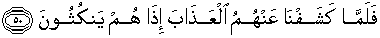 50. Maka tatkala Kami hilangkan azab itu dari mereka, dengan serta merta mereka memungkiri (janjinya).