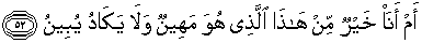 52. Bukankah aku lebih baik dari orang yang hina ini dan yang hampir tidak dapat menjelaskan (perkataannya)?