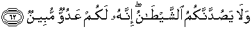 62. Dan janganlah kamu sekali-kali dipalingkan oleh syaitan; sesungguhnya syaitan itu musuh yang nyata bagimu.