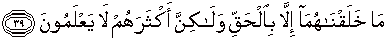 39. Kami tidak menciptakan keduanya melainkan dengan haq, tetapi kebanyakan mereka tidak mengetahui.