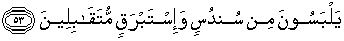 53. mereka memakai sutera yang halus dan sutera yang tebal, (duduk) berhadap-hadapan,