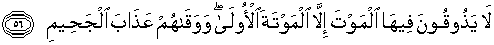 56. mereka tidak akan merasakan mati di dalamnya kecuali mati di dunia. Dan Allah memelihara mereka dari azab neraka,