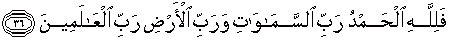 36. Maka bagi Allah-lah segala puji, Tuhan langit dan Tuhan bumi, Tuhan semesta alam.