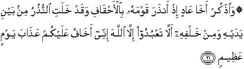 21. Dan ingatlah (Hud) saudara kaum 'Aad yaitu ketika dia memberi