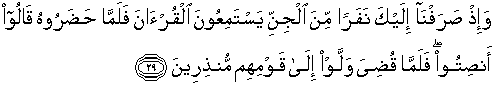 29. Dan (ingatlah) ketika Kami hadapkan serombongan jin kepadamu yang