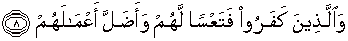 8. Dan orang-orang yang kafir, maka kecelakaanlah bagi mereka dan Allah menyesatkan amal-amal mereka.