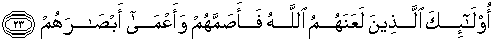 23. Mereka itulah orang-orang yang dila'nati Allah dan ditulikan-Nya telinga mereka dan dibutakan-Nya penglihatan mereka.