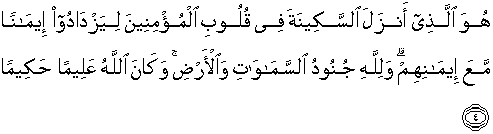 4. Dia-lah yang telah menurunkan ketenangan ke dalam hati orang-orang